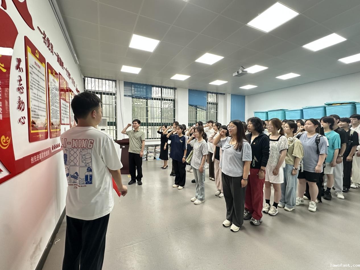 宣誓仪式在雄壮的《国际歌》歌声中拉开帷幕。50余名师生党员整齐肃立,在党支部书记代表吴淦的领誓下,面向鲜红的党旗,庄严举起右拳,郑重宣誓。铿锵有力的誓言,表达了新党员对党的庄严承诺,展现了新时代共产党员的责任担当和为共产主义事业奋斗终身的坚定决心。
